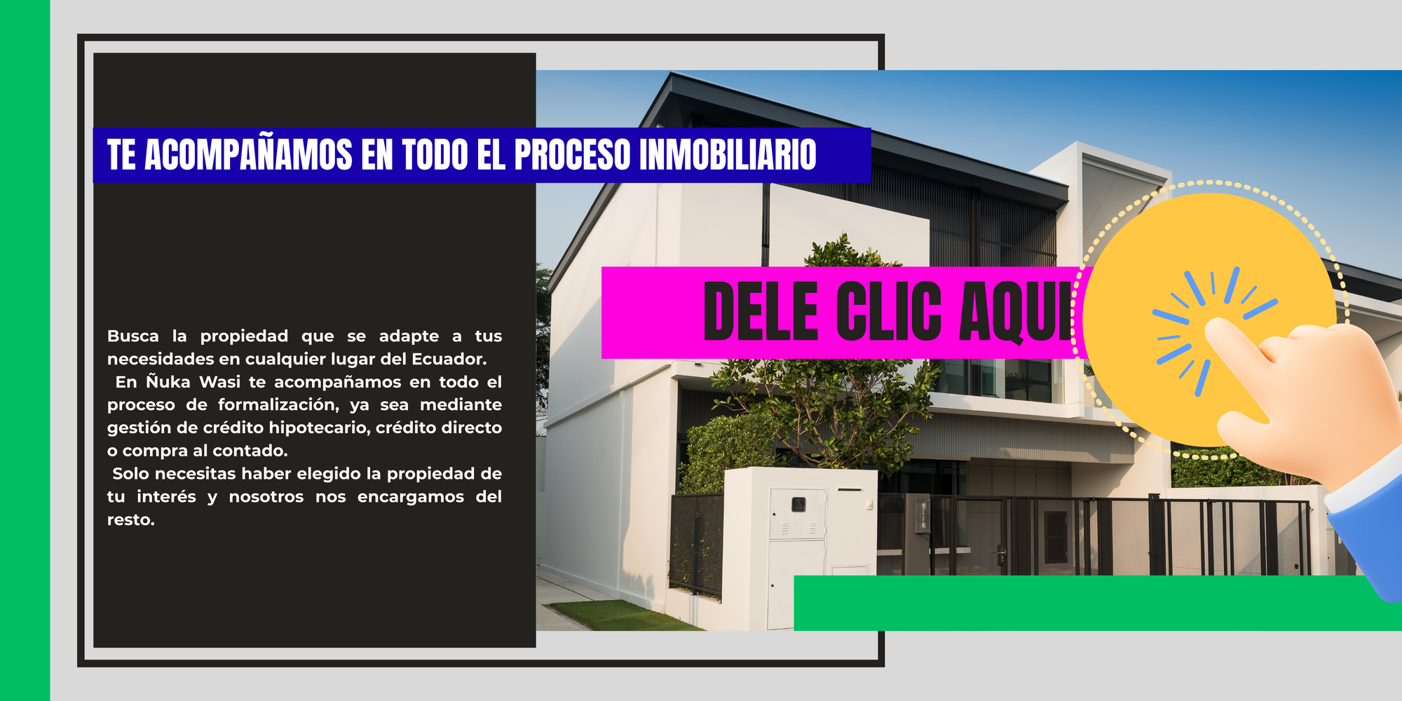 En Ñuka Wasi te acompañamos en todo el proceso de formalización, ya sea mediante gestión de crédito hipotecario, crédito directo o compra al contado.